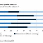 Homeoffice hat sich in Deutschland auch nach der Covid-19-Pandemie etabliert, wird jedoch an weniger Arbeitstagen genutzt. 23,5 % aller Erwerbstätigen waren im Jahr 2023 zumindest gelegentlich im Homeoffice, wie das Statistische Bundesamt (Destatis) mitteilt. Damit war der Anteil nur geringfügig niedriger als im Jahr 2022 mit 24,0 % und im Jahr 2021 mit 24,9 %. Im März 2022 war die aufgrund der Corona-Pandemie eingeführte Homeoffice-Pflicht ausgelaufen. Wie stark sich das Arbeiten von zuhause aus inzwischen etabliert hat, zeigt der Vergleich mit dem Vor-Corona-Niveau: 2019 hatten lediglich 12,8 % der Erwerbstätigen im Homeoffice gearbeitet.