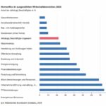 Wie häufig Homeoffice genutzt wird, hängt auch stark von der jeweiligen Branche ab. Am höchsten war der Anteil 2023 im Bereich IT-Dienstleistungen: Hier arbeiteten knapp drei Viertel (74,7 %) der abhängig Beschäftigten zumindest gelegentlich von zu Hause aus. In der Verwaltung und Führung von Unternehmen sowie in der Unternehmensberatung nahmen 72,5 % Homeoffice in Anspruch, bei Versicherungen, Rückversicherungen und Pensionskassen waren es gut zwei Drittel der Beschäftigten (68,6 %). Im Gesundheitswesen konnten mit 6,4 % anteilig die wenigsten Beschäftigten ihre Arbeit auch zu Hause ausüben. Auch eine Tätigkeit im Einzelhandel (8,3 %) oder etwa im Bau- und Ausbaugewerbe (8,4 %) war nur selten im Homeoffice möglich.