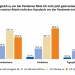Eine Studie des Robert Koch-Instituts (RKI) zum Belastungsempfinden und Unterstützungsbedarf von Fachkräften im Gesundheitswesen während der COVID-19-Pandemie zeigt: Das Gesundheitspersonal war außergewöhnlichen Belastungen ausgesetzt, setzte sich intensiv für die Kontinuität der Versorgung ein und trug zu innovativen Lösungen während der COVID-19-Pandemie bei. Fachkräfte berichteten von hoher Arbeitsbelastung, Angst vor Infektion und anderem durch die Pandemie verursachten Stress. Bereits bestehende Defizite wie der Fachkräftemangel und die hierarchischen Strukturen im Gesundheitssystem traten während der Pandemie deutlich zutage.