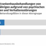 Psychische Erkrankungen und Verhaltensstörungen stellten im Jahr 2022 nach Verletzungen und Vergiftungen die zweithäufigste Ursache für stationäre Krankenhausbehandlungen von Kindern und Jugendlichen dar. Gut 81.000 der rund 435.900 Krankenhauspatientinnen und -patienten im Alter von 10 bis 17 Jahren wurden aufgrund von psychischen Erkrankungen und Verhaltensstörungen stationär behandelt. Wie das Statistische Bundesamt (Destatis) mitteilt, entsprach das 19 % aller Krankenhausbehandlungen in dieser Altersgruppe. Mädchen werden dabei häufiger aufgrund von psychischen Erkrankungen und Verhaltensstörungen im Krankenhaus behandelt: Während bei ihnen knapp ein Viertel (24 %) aller Behandlungsfälle auf diese Diagnose entfiel, waren es bei den Jungen 13 %. Insgesamt werden seit einigen Jahren anteilig immer mehr Kinder und Jugendliche wegen psychischer Erkrankungen und Verhaltensstörungen stationär behandelt. Im Jahr 2012 traf dies noch auf gut 79.300 oder 13 % der rund 589.900 Klinikpatientinnen und -patienten im Alter von 10 bis 17 Jahren zu.