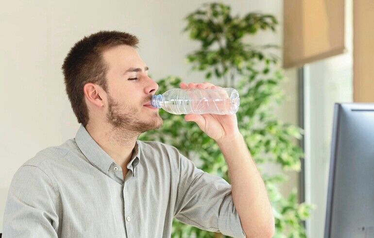 - Bei Hitze braucht der Körper mehr Flüssigkeit, um schwitzen zu können. Trinken Sie also viel Wasser oder lauwarmen Kräutertee. Für geschmackliche Abwechslung sorgen ein paar Beeren, frische Kräuter wie Pfefferminze oder Zitronenmelisse oder zwei, drei Scheiben Zitrone oder Gurke im Getränk.
